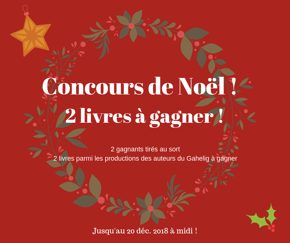 📢 2 LIVRES A GAGNER ! Pour fêter le premier Noël du groupe des auteurs helvétiques de genre et la création de notre association, nous avons le plaisir de mettre au concours : Le LIVRE DE VOTRE CHOIX parmi les publications des auteurs du Gahelig… Continue Reading « Concours de Noël du GAHELIG »
