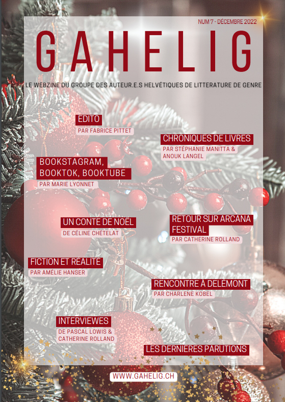 Le dernier numéro du Webzine, du GAHeLiG (Groupe des Auteurs helvétiques de littérature de genre) est en ligne sur notre site internet ! https://gahelig.ch/uploads/Webzine_9.pdf En quelques clics, levez le voile sur la vie d’auteurs, apprenez comment se crée un salon littéraire, ce que nous… Continue Reading « Webzine n°9 Décembre 2023 »